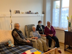 Après quelques Belles Escapades avec le foyer de jour, la nouvelle arrivante au home, Colette, née en 1928 y retrouve de vieilles connaissances, plus précisément ses anciennes voisines de Croix-Fédérale 36. Les équipes et ses amies l’accueillent chaleureusement. Voilà déjà l’heure d’une première collation ou d’un repas, le cuisinier vient se renseigner sur ses préférences alimentaires, le service de l’intendance prend soin de ses affaires, la soignante lui prépare un nid douillet où se reposer et l’équipe d’animation la renseigne sur son nouvel environnement et les activités qu’elle peut y faire.